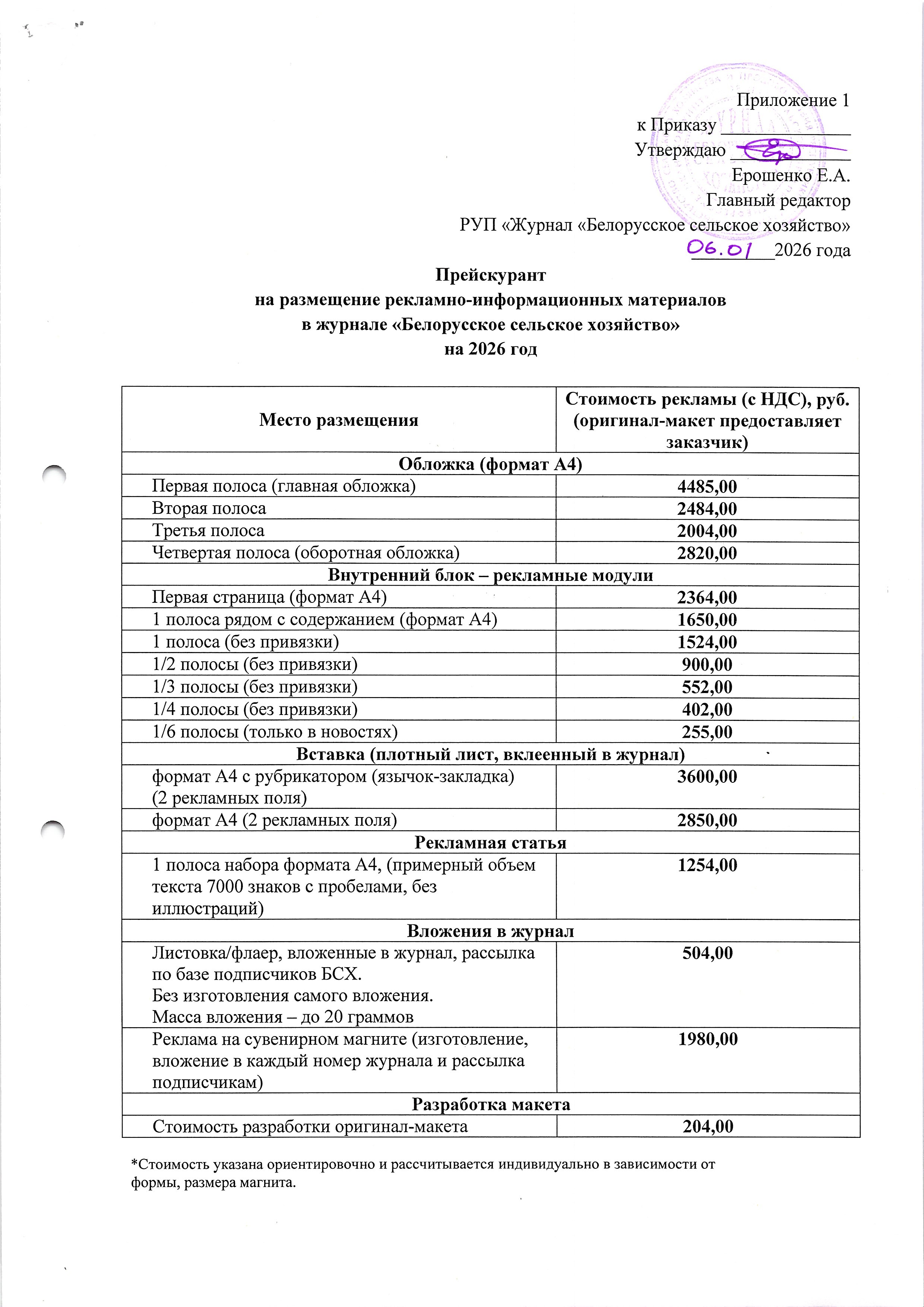 Размещение рекламы в журнале «Белорусское сельское хозяйство»
