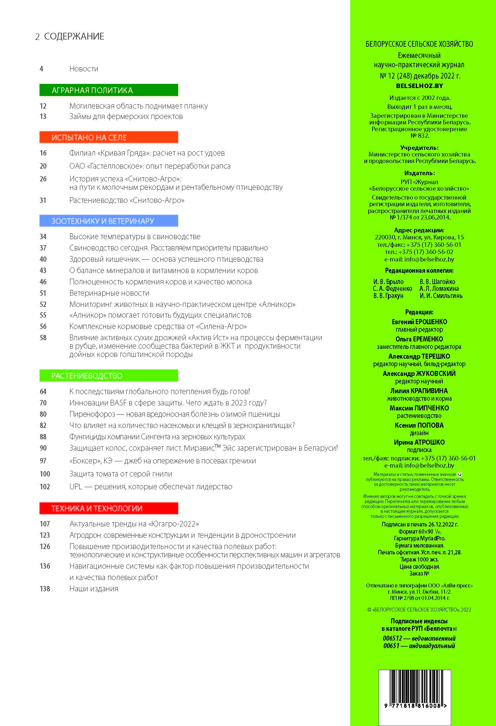 Декабрьский номер научно-практического журнала "Белорусское сельское хозяйство"