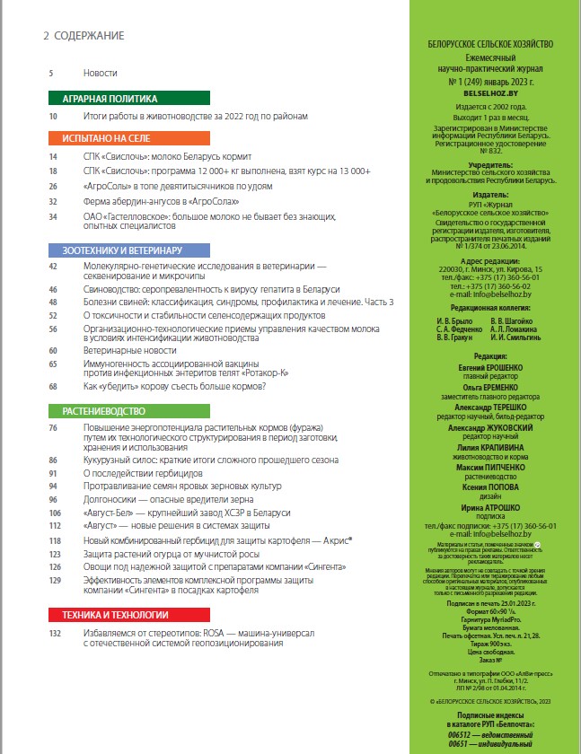 Январский выпуск научно-практического журнала "Белорусское сельское хозяйство"