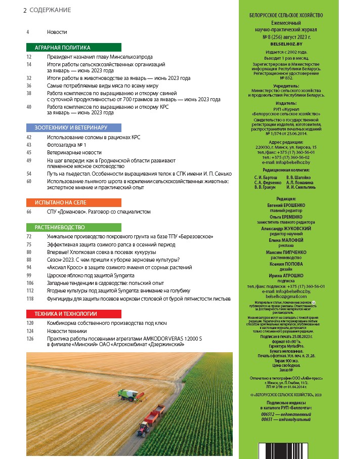 Читайте в августовском номере журнала «Белорусское сельское хозяйство»